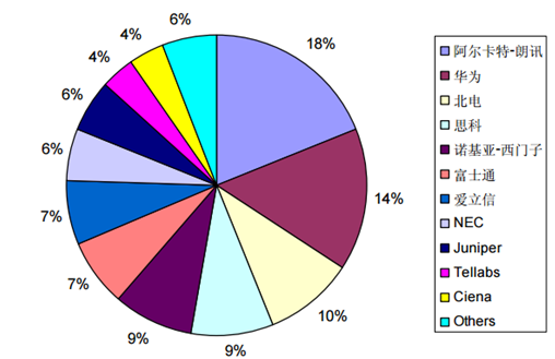 全球光傳輸設(shè)備廠商的市場(chǎng)份額情況