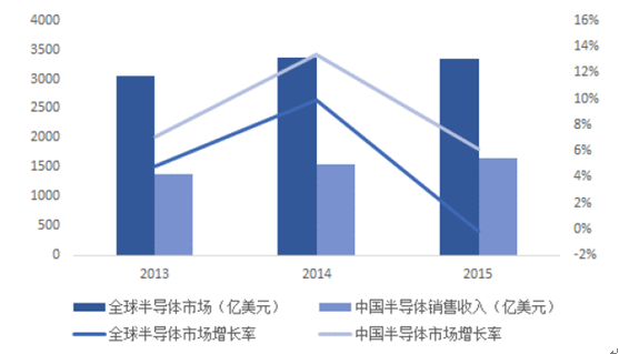 受宏觀經(jīng)濟因素的影響,全球半導(dǎo)體元器件需求不振。根據(jù)SIA公布的數(shù)據(jù),2015年全球半導(dǎo)體市場銷售額為3352億美元,同比下降了0.2%。全球半導(dǎo)體市場下滑的主要原因是PC銷售下降和智能手機出貨增速放緩。根據(jù)IDC統(tǒng)計,2015年全球PC和平板出貨量同比下降約10%,而智能手機的增速從2014年27%降至10.13%。
